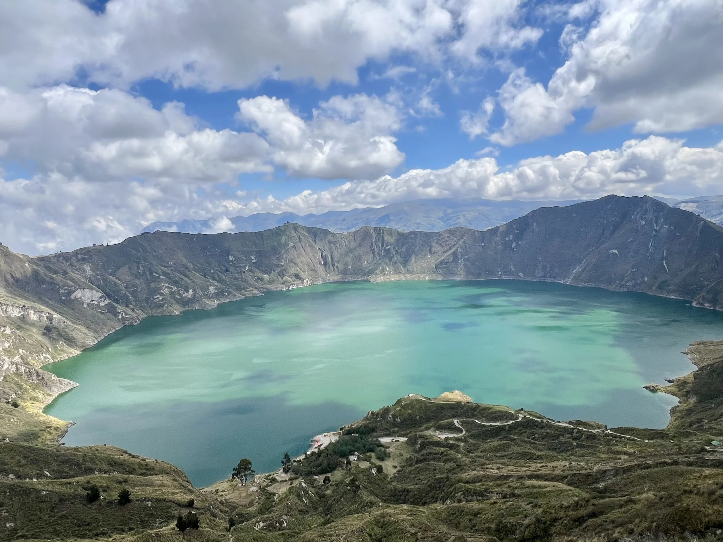 We arrived in Quito on an evening flight, and over the next few days, our group traveled throughout the Cotopaxi region of Ecuador. We spent a day touring Guangaje, visiting communities, speaking with residents, and meeting families of past scholarship recipients. Our guide was Dr. Fernando Ortega, medical anthropologist and FFGE Board Member, who has been working in Guangaje for over 25 years. The area's beauty and magic were powerful, and we gained a better understanding of the culture and where these students grew up. We were able to see the beautiful Lake Quilotoa, which presides over Guangaje.